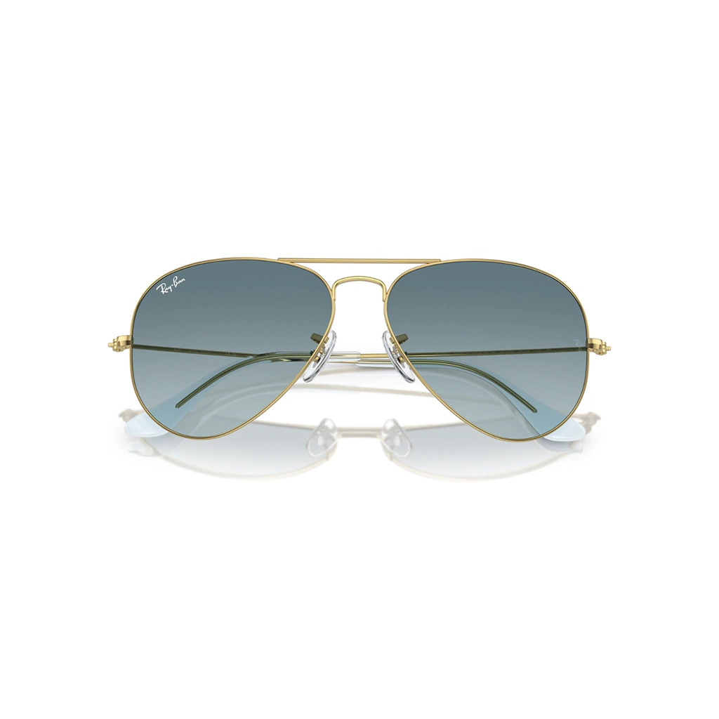 Los lentes de sol Ray-Ban RB3025 Aviator Gradient siempre han sido los favoritos de los pilotos. Desde su diseño original en 1937, los Aviator se volvieron un ícono. Esta versión viene con un giro contemporáneo a través del armazón de metal con varillas doradas y micas en azul degradé.